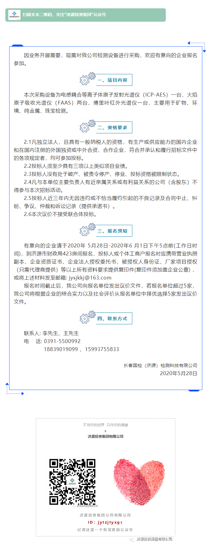 長(zhǎng)春國(guó)檢(濟(jì)源)檢測(cè)科技有限公司采購(gòu)ICP-AES、FAAS、傅里葉紅外光譜儀等檢測(cè)設(shè)備競(jìng)爭(zhēng)性議價(jià)公