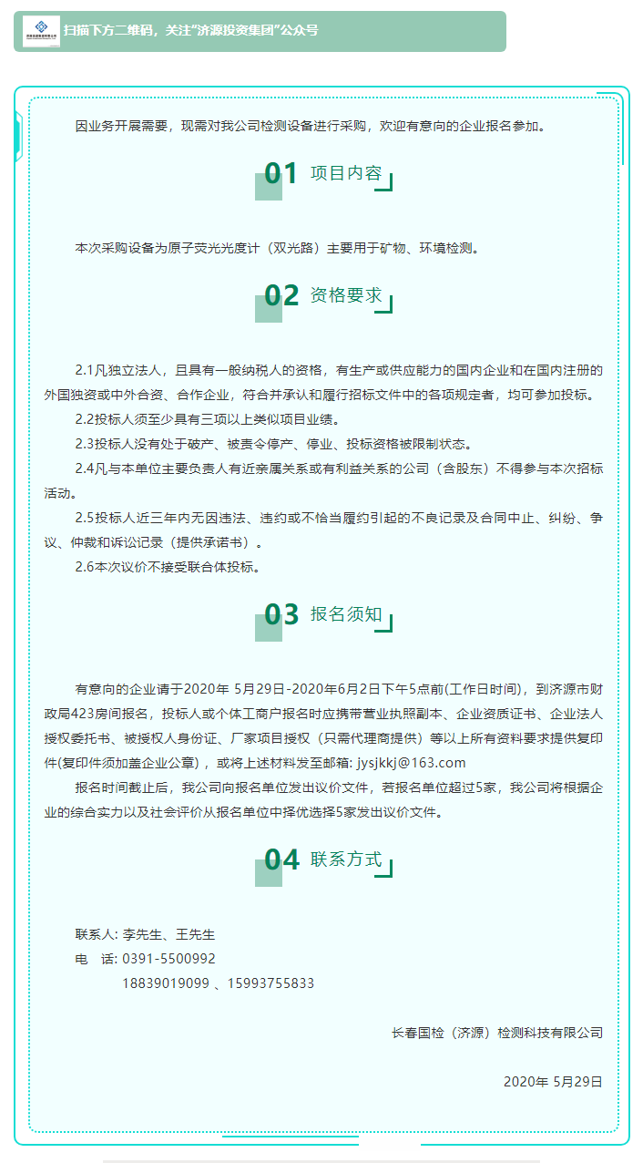 長春國檢(濟源)檢測科技有限公司采購原子熒光光度計檢測設備競爭性議價公告