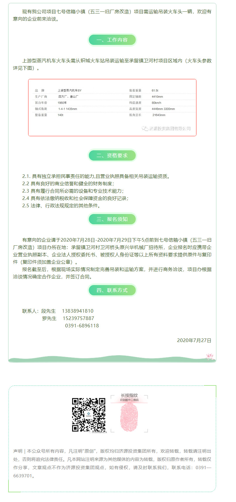 七號信箱小鎮(zhèn)(五三一舊廠房改造)項目火車頭吊裝運輸詢價公告