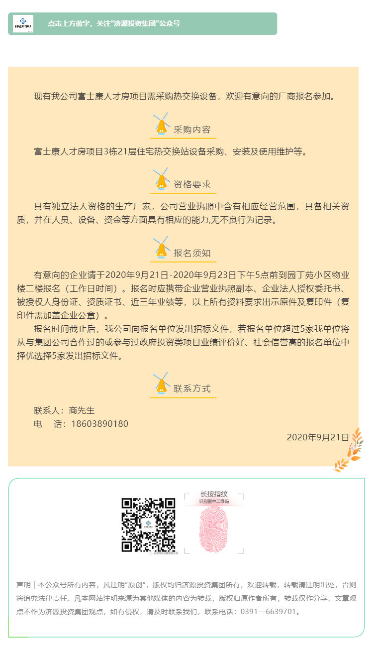 富士康人才房項目熱交換設備采購安裝競爭性議價公告