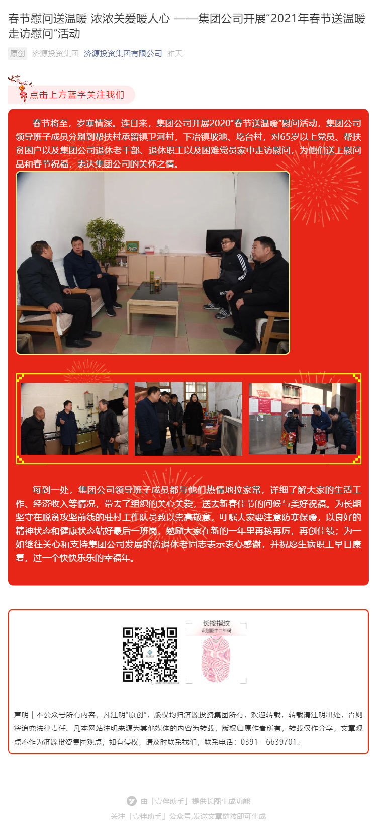 春節(jié)慰問送溫暖 濃濃關(guān)愛暖人心 ——集團(tuán)公司開展“2021年春節(jié)送溫暖走訪慰問”活動(dòng)