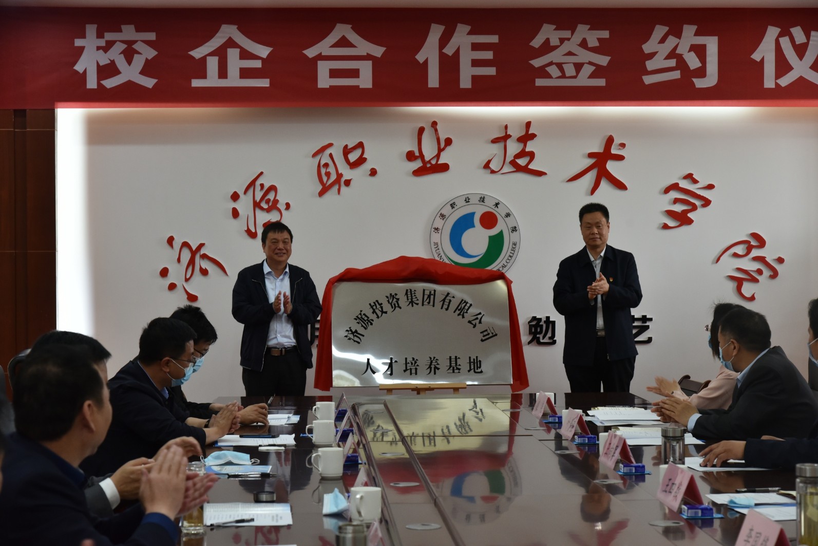 集團公司黨委書記、董事長陳明亮與濟源職業(yè)技術(shù)學院黨委書記王四戰(zhàn)為“濟源市投資集團有限公司人才培養(yǎng)基地”揭牌。