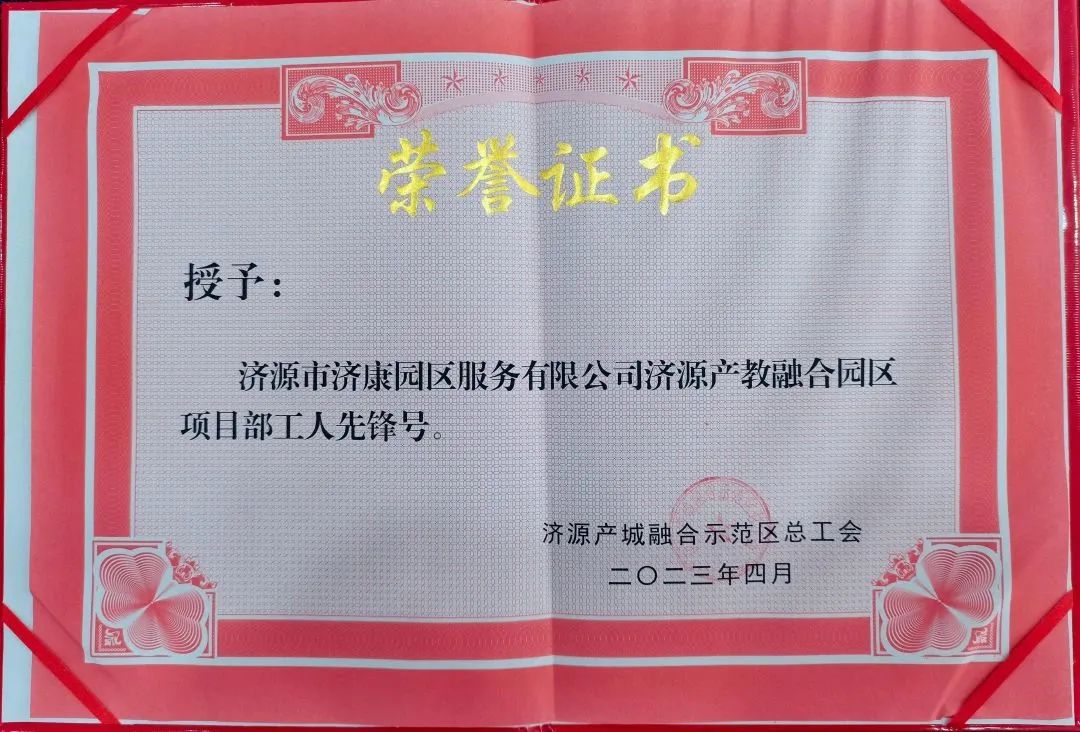 4月25日,濟(jì)源示范區(qū)總工會(huì)舉辦濟(jì)源示范區(qū)2023年五一勞動(dòng)獎(jiǎng)和工人先鋒號(hào)表彰大會(huì)。會(huì)上,濟(jì)源投資集團(tuán)所屬河南省濟(jì)源市建設(shè)投資有限公司榮獲“濟(jì)源示范區(qū)‘五一’勞動(dòng)獎(jiǎng)狀”,濟(jì)源投資集團(tuán)所屬濟(jì)源市濟(jì)康園區(qū)服務(wù)有限公司濟(jì)源產(chǎn)教融合園區(qū)項(xiàng)目部榮獲“濟(jì)源示范區(qū)工人先鋒號(hào)”。