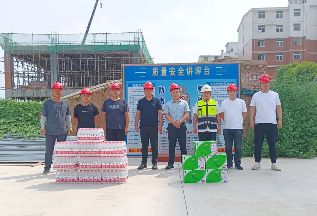 在濟(jì)源產(chǎn)教融合園區(qū)項(xiàng)目部、濟(jì)源東區(qū)項(xiàng)目指揮部、進(jìn)出口加工貿(mào)易產(chǎn)業(yè)園A區(qū)等項(xiàng)目施工現(xiàn)場(chǎng),領(lǐng)導(dǎo)們向奮斗在一線的職工派發(fā)礦泉水、涼茶等降溫飲品,認(rèn)真傾聽他們的訴求,感謝他們?yōu)榧瘓F(tuán)公司項(xiàng)目建設(shè)作出的貢獻(xiàn),并叮囑大家在堅(jiān)守崗位的同時(shí),注意高溫作業(yè)安全,注重身體防護(hù),以健康的體魄為項(xiàng)目戰(zhàn)酷暑、快建設(shè)創(chuàng)造牢固基礎(chǔ)。