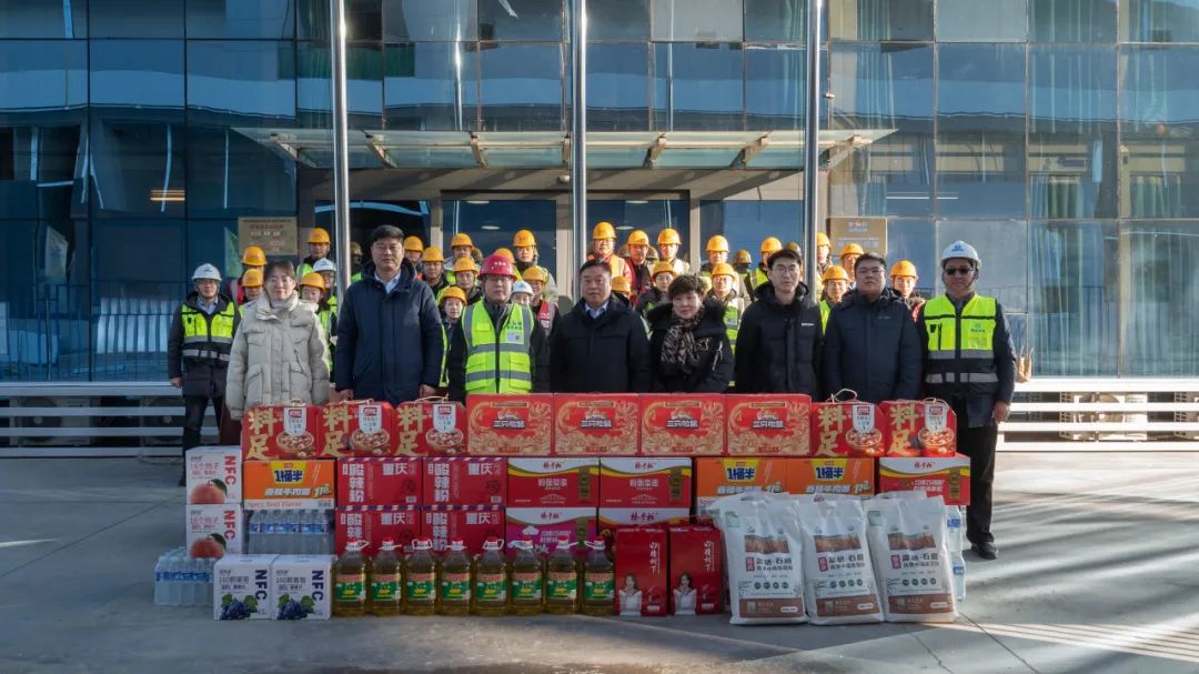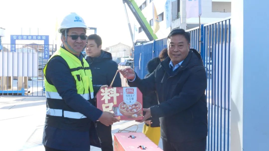 集團(tuán)公司黨委副書記、總經(jīng)理賈永紅前往春節(jié)期間“三不?!表?xiàng)目5G?數(shù)字化應(yīng)用基地、進(jìn)出口加工貿(mào)易產(chǎn)業(yè)園B區(qū)項(xiàng)目現(xiàn)場(chǎng),向奮戰(zhàn)在施工一線的參建者們致以誠(chéng)摯的問候,并發(fā)放了精心準(zhǔn)備的御寒物資、春節(jié)慰問品,叮囑大家注意防寒保暖和施工安全,祝福大家身體健康、工作順利。