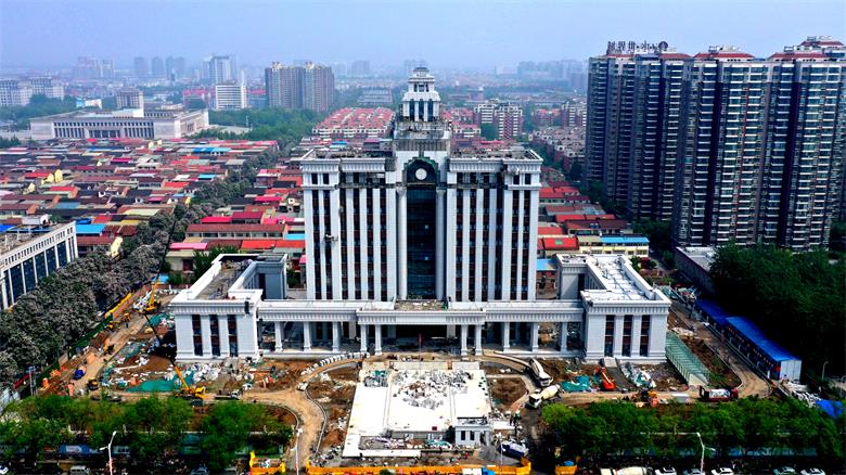 近日,記者來到濟(jì)源海關(guān)項(xiàng)目施工現(xiàn)場(chǎng),遠(yuǎn)遠(yuǎn)就看到一座簡(jiǎn)約又大氣的高樓,這就是即將完工的濟(jì)源海關(guān)綜合業(yè)務(wù)技術(shù)用房。高樓外墻的芝麻白花崗巖石材與赭色鋁板基本安裝結(jié)束,工人正在小心翼翼地安裝最后一根羅馬柱的干掛石材。